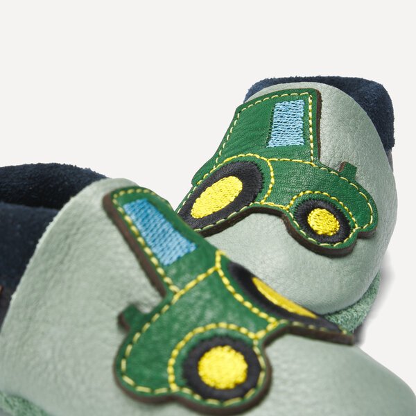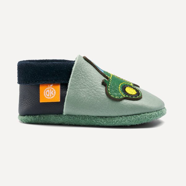Unsere Orangenkinder® Leder-Hausschuhe „Herbert der Trecker“ werden liebevoll aus atmungsaktivem, pflanzlich gegerbtem Bio-Leder von Hand gefertigt. Ob als erste Krabbelschuhe, als Laufenlernschuhe oder einfach zum Schutz kleiner Zehen – sie lassen den Füßen genug Platz zum Wachsen und fühlen sich fast so frei an wie barfuß.