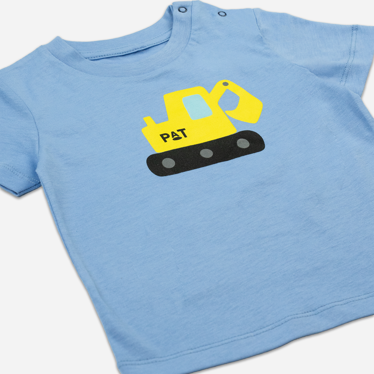 Kinderkleidung von Orangenkinder® – Jetzt rollt auch unser Bagger PAT fröhlich über die Kleidung für Babys und Kleinkinder. Gefertigt aus reinem Baumwolljersey überzeugt unser T-Shirt Bagger mit süßem Look und herrlich weichem Tragegefühl.